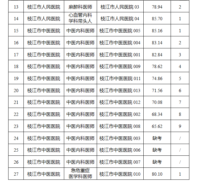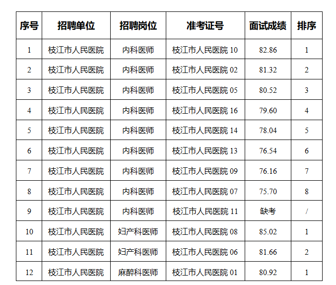 根据《枝江市2026年“招才兴业”卫生健康系统事业单位人才引进公开招聘公告·武汉大学站》,现将枝江市2026年“招才兴业”卫生健康系统事业单位人才引进公开招聘·武汉大学站面试成绩予以公告。
