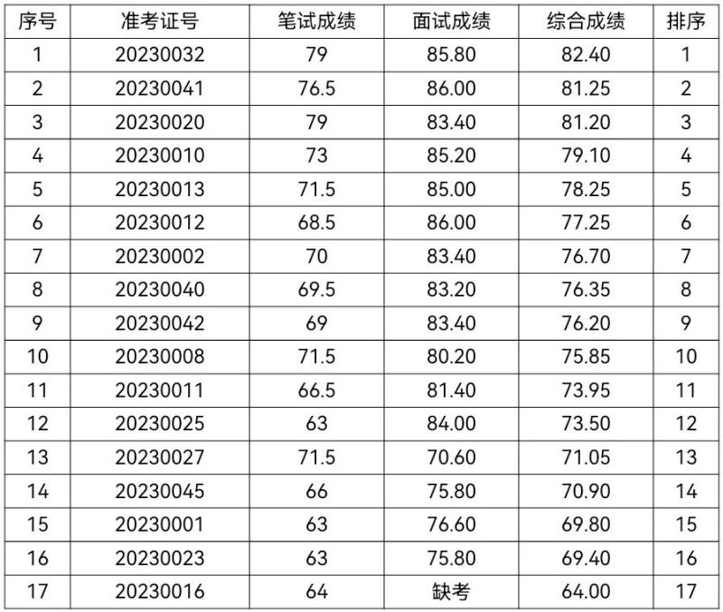 根据《枝江市马家店街道办事处面向2023年高校毕业生招聘社区工作者公告》规定,现将枝江市马家店街道办事处面向2023年高校毕业生招聘社区工作者面试成绩和综合成绩予以公告。